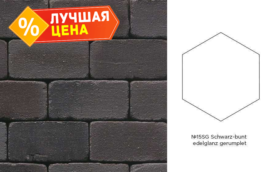Клинкерная брусчатка Muhr №15SG Schwarz-bunt edelglanz gerumpelt, гексагон 200x52 мм